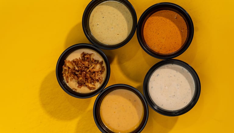 Descubre nuestras salsas exclusivas, creadas con recetas únicas para acompañar tu shawarma en CRAVOX Madrid. El complemento perfecto que convierte cada bocado en una experiencia inolvidable.